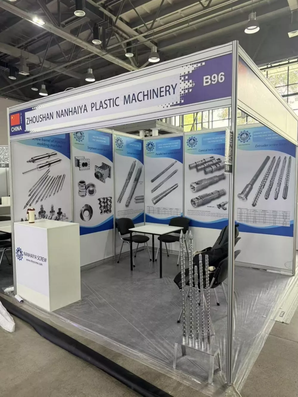 Аз 21 то 23 сентябри соли 2025, Zhoushan Nanhaiya Plastic Machinery Co., Ltd дар дӯкони худ моделҳои винт ва баррели хурдшудаи худро ба намоиш гузошт. Маҳсулот бо технологияи пешрафтаи ба фарсудашавӣ тобовар ва қарорҳои фармоишӣ ба як ҷузъи муҳими намоишгоҳ табдил ёфта, харидорони сершумори кишварҳои Осиёи Марказӣ, аз қабили Ӯзбекистон ва Қазоқистонро ҷалб кард.